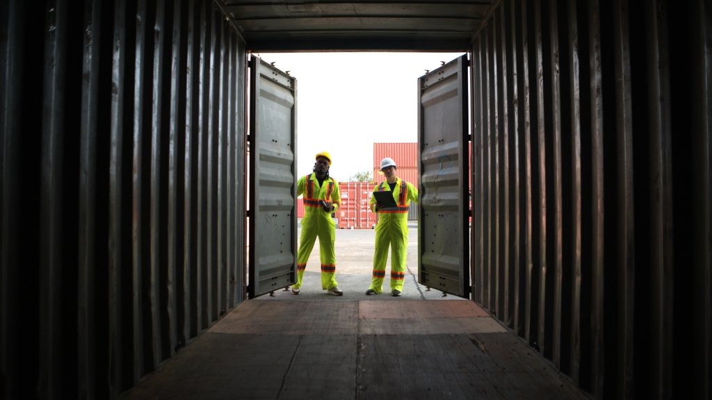 Professional container loading and unloading with safe handling and secure stacking.